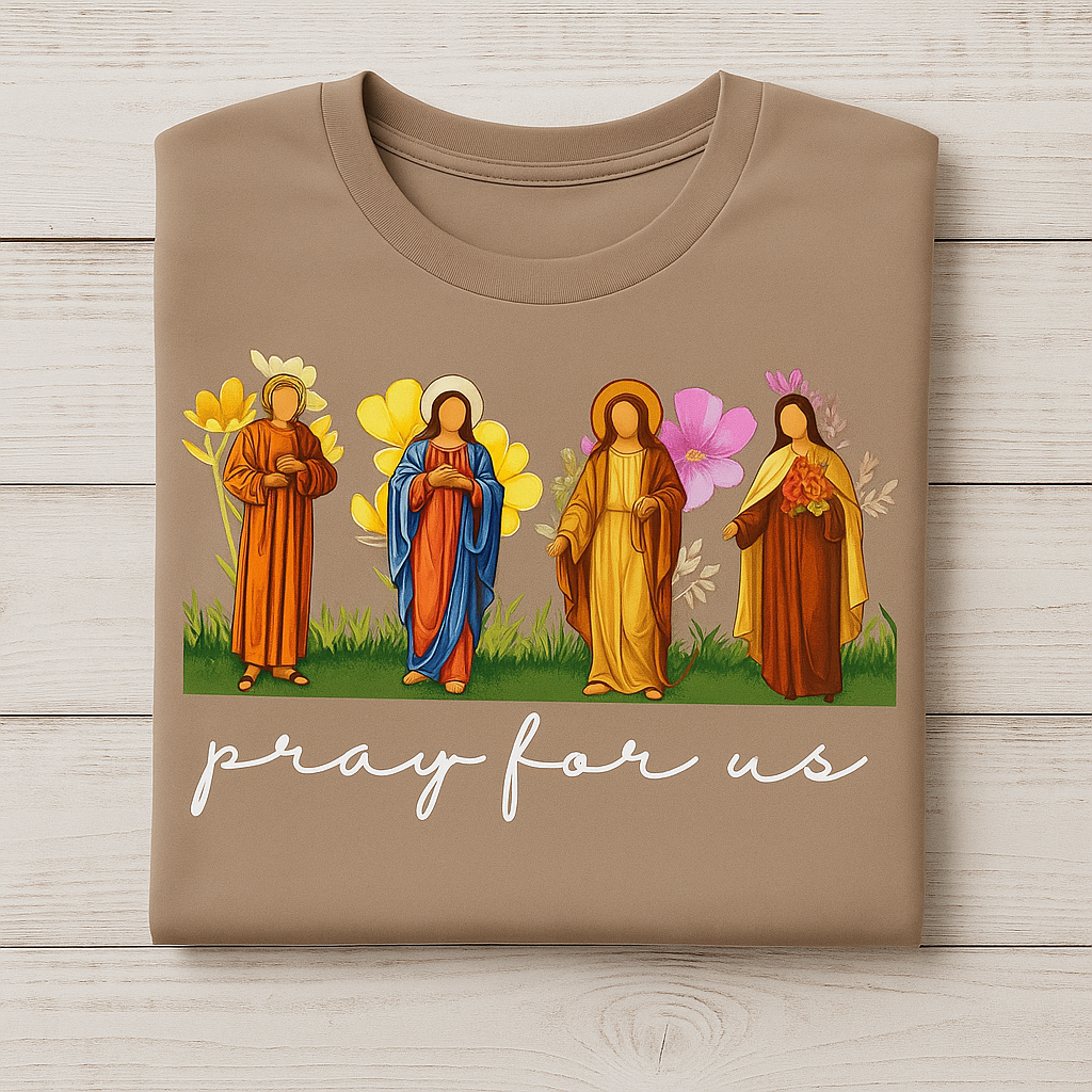 The colors, the details, the meaning, everything came together so perfectly. There's just something so comforting about seeing these Saints together with the words "pray for us". A reminder that we're never alone, never unheard, and always held in grace. If you need something full of peace, beauth and faith...this is it. Available in any color.