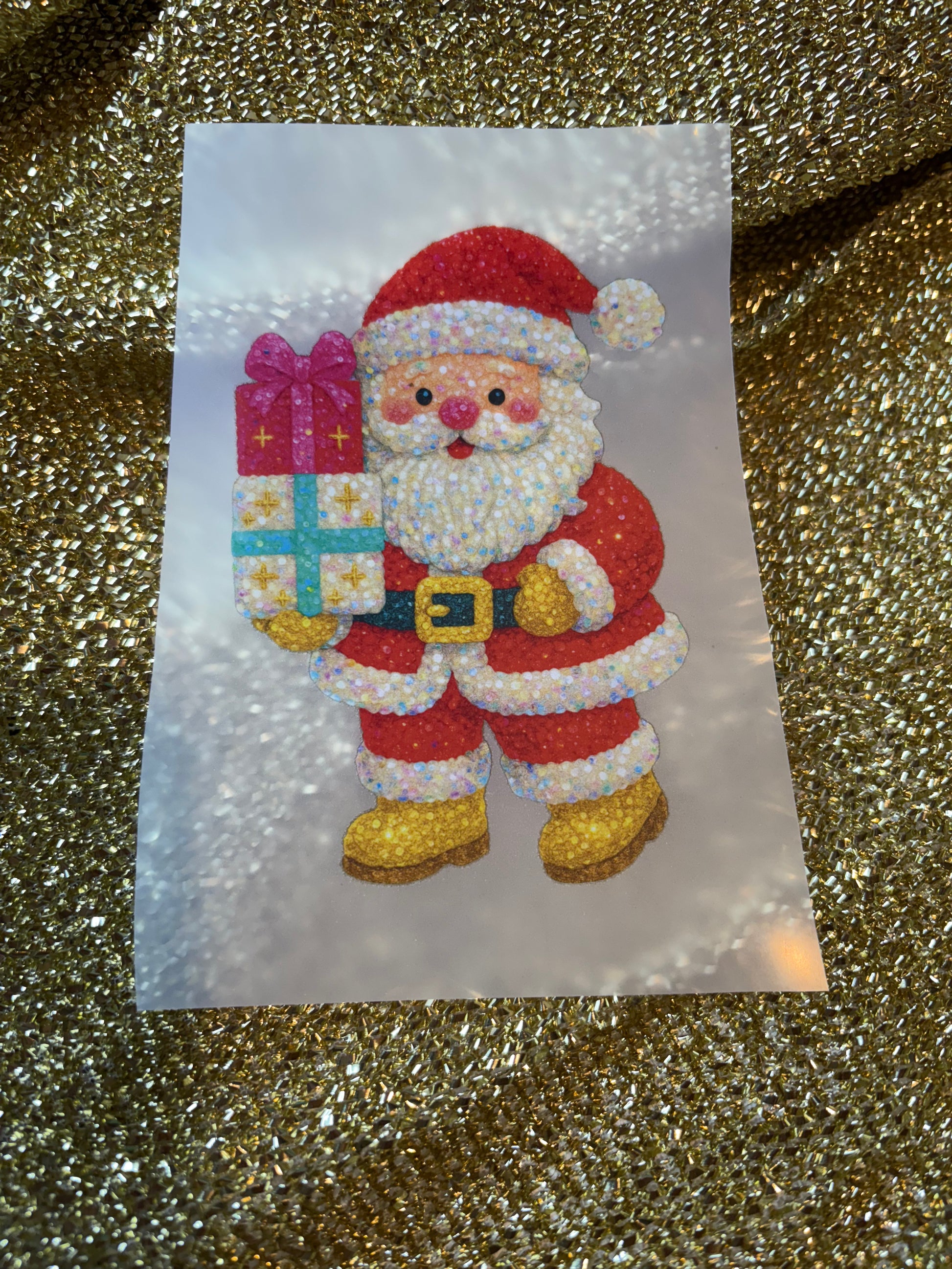 A sparkle looking Santa DTF, also available as a shirt. Available in Adult and Kid sizes.